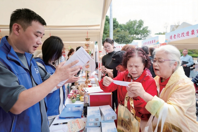 >> 2024年10月10日,浙江省“九九重陽 久久孝老”敬老月活動啟動儀式在杭州市黃龍體育中心舉行。在廣場游園會中,布置了愛心卡集市、適老化改造集市。