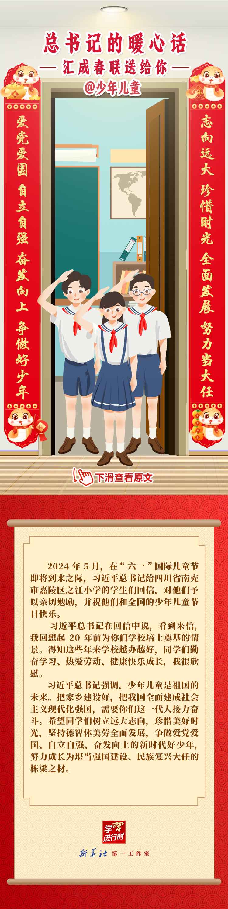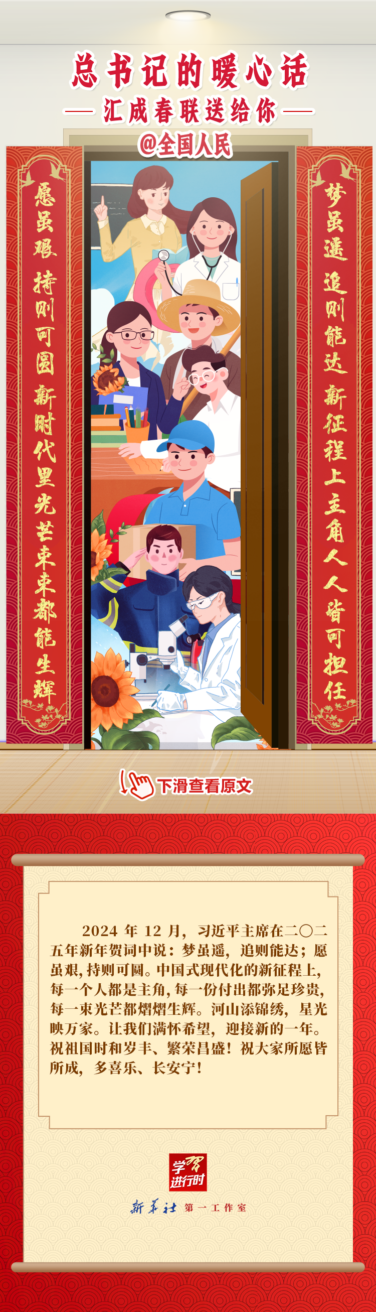 過春節,貼春聯,寄托人們對新年的美好愿望。過去一年,習近平總書記在不同場合點贊各行各業奮斗者,說了許多暖心話。新春之際,我們匯編成聯,向新征程上的每一位“主角”致敬,送上新春的祝福。