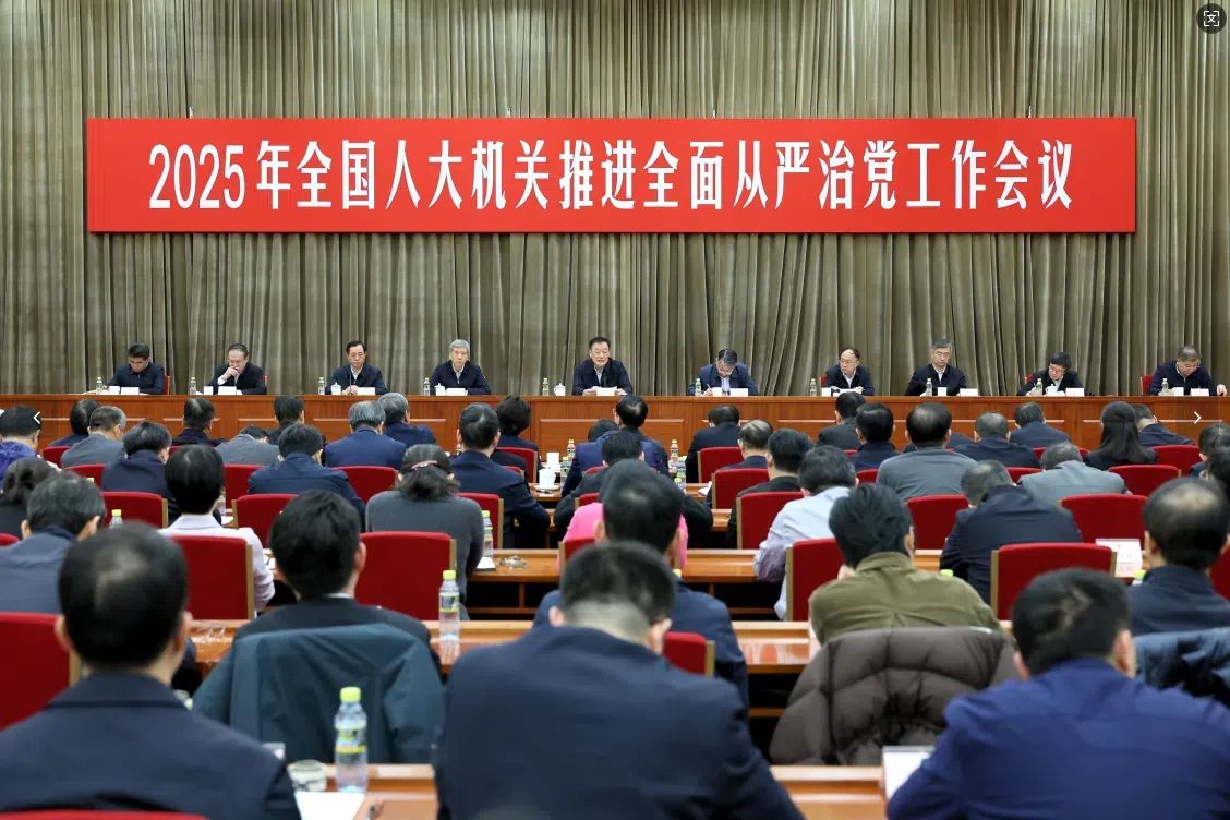 會議指出,全面從嚴治黨成效最終要通過貫徹落實黨中央決策部署、服務保障全國人大常委會中心工作來體現,各單位各部門要以時不我待的精神加快推進、貫徹落實常委會2025年度工作要點和立法、監督、代表、外事工作計劃。要精心做好十四屆全國人大三次會議的組織籌備工作,確保大會順利召開、安全有序、圓滿成功。機關全體黨員、干部要堅持干字當頭、奮發有為,嚴守紀律規矩,高質量做好參謀服務保障工作,為堅持好、完善好、運行好人民代表大會制度,穩中求進推動人大工作高質量發展作出應有貢獻。