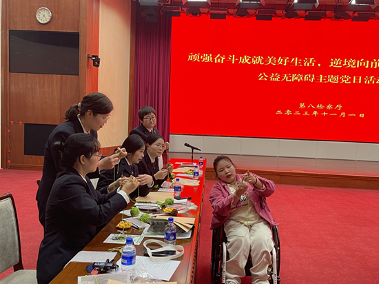 除每年固定的主題黨日外,我們注重結合職能創新做好自選動作。2023年9月1日,《中華人民共和國無障礙環境建設法》正式施行,該法第六十三條明確規定了檢察公益訴訟條款。2023年11月1日,我們結合貫徹落實無障礙環境建設法,開展了“公益無障礙”主題黨日,邀請北京新起點公益基金會的代表講述自己的故事。