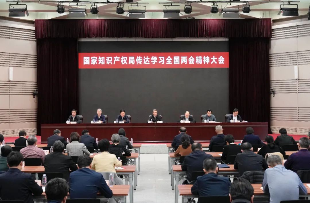 3月12日,國家知識產權局召開學習貫徹全國兩會精神大會暨黨組理論學習中心組學習(擴大)會,傳達學習習近平總書記在全國兩會上的重要講話精神和全國兩會精神,研究部署貫徹落實工作。局黨組書記、局長申長雨主持會議并講話。