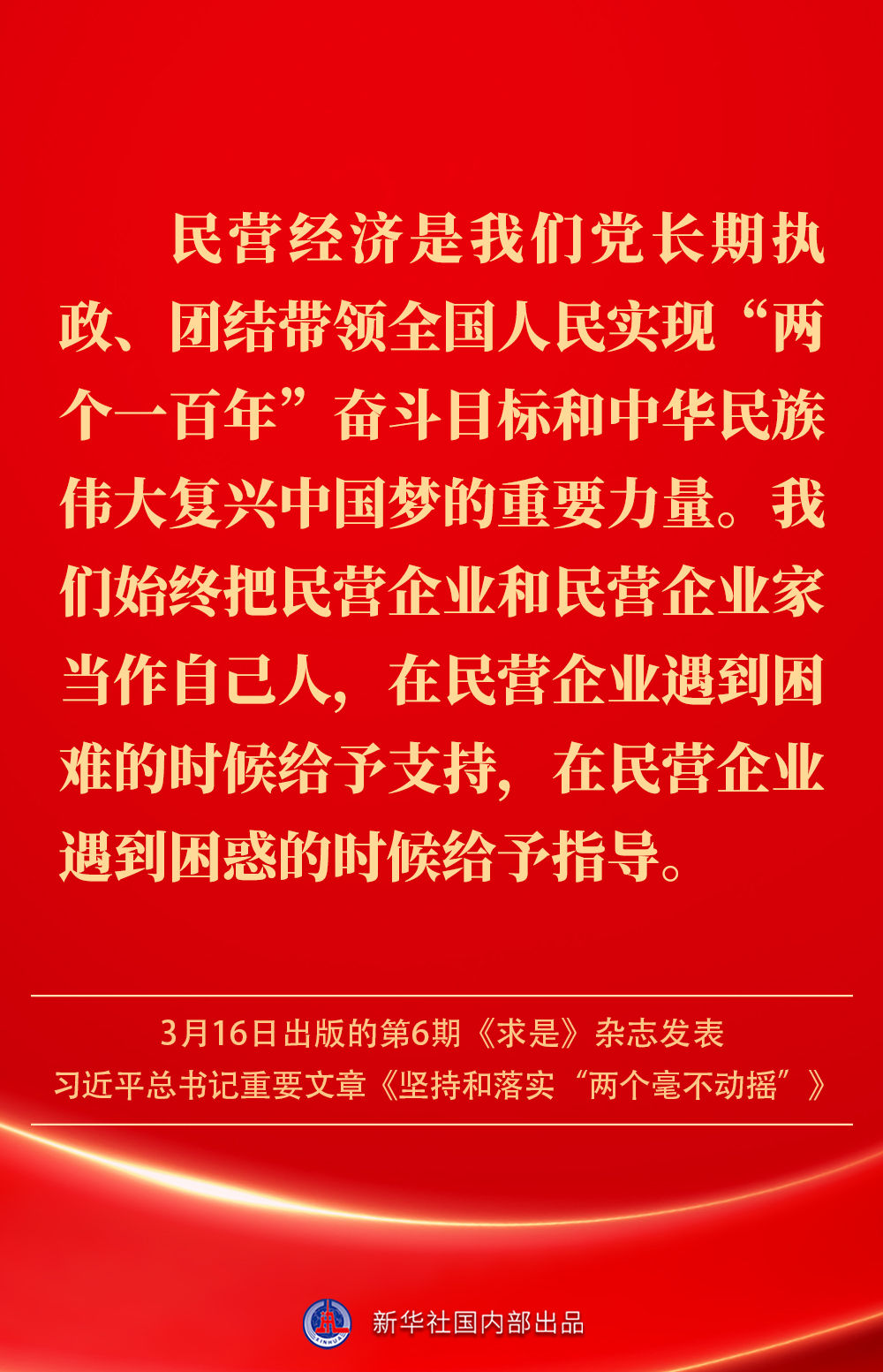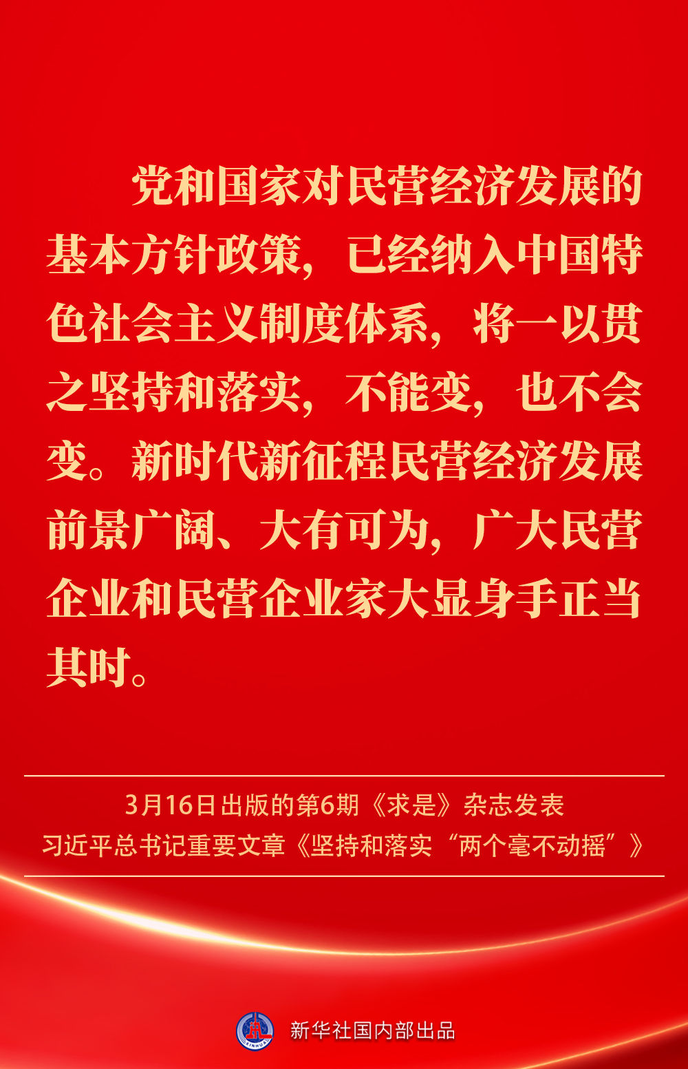 3月16日出版的第6期《求是》雜志發表習近平總書記重要文章《堅持和落實“兩個毫不動搖”》。這是習近平總書記2013年11月至2025年2月期間有關重要論述的節錄。如何認識“兩個毫不動搖”?公有制經濟和非公有制經濟是怎樣的關系?習近平總書記這樣闡述——