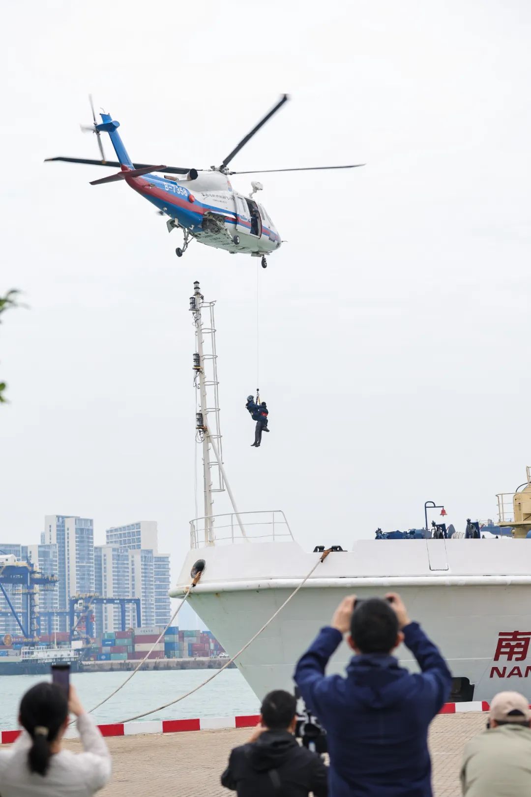 3月19日,中國交通運輸部救撈系統在海南??诮M織開展了南部海區??樟Ⅲw救助演練。此次演練涵蓋了人員落水搜救、直升機吊運快速轉運送醫、深遠海掃測等科目。
