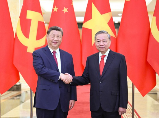 習近平指出,很高興對越南進行國事訪問,實現同蘇林總書記的首輪互訪。今年是越南共產黨成立95周年、越南建國80周年和南方解放50周年,我代表中國共產黨和中國政府向越方致以熱烈祝賀。中方將一如既往支持越南走好符合本國國情的社會主義道路,勝利召開2026年越共十四大,朝著建黨建國“兩個一百年”奮斗目標不斷邁進。