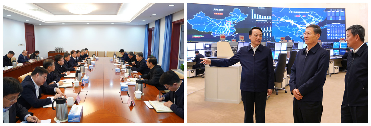 調研組深入國鐵集團調度指揮中心,了解國鐵集團在貫徹落實黨中央重大決策部署和習近平總書記重要指示批示精神,建設交通強國、鐵路先行的有關情況。郭文奇與郭竹學同志就認真落實機關黨建主體責任、全面提高新時代新征程機關黨建質量等情況,進行了深入交流,對國鐵集團全面深化改革、以高質量黨建促進鐵路事業高質量發展的做法經驗給予肯定。