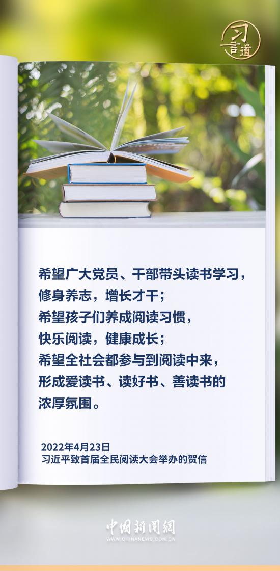 書香是一種氛圍。習近平總書記多次強調讀書的重要性,希望全社會都參與到閱讀中來,形成愛讀書、讀好書、善讀書的濃厚氛圍。