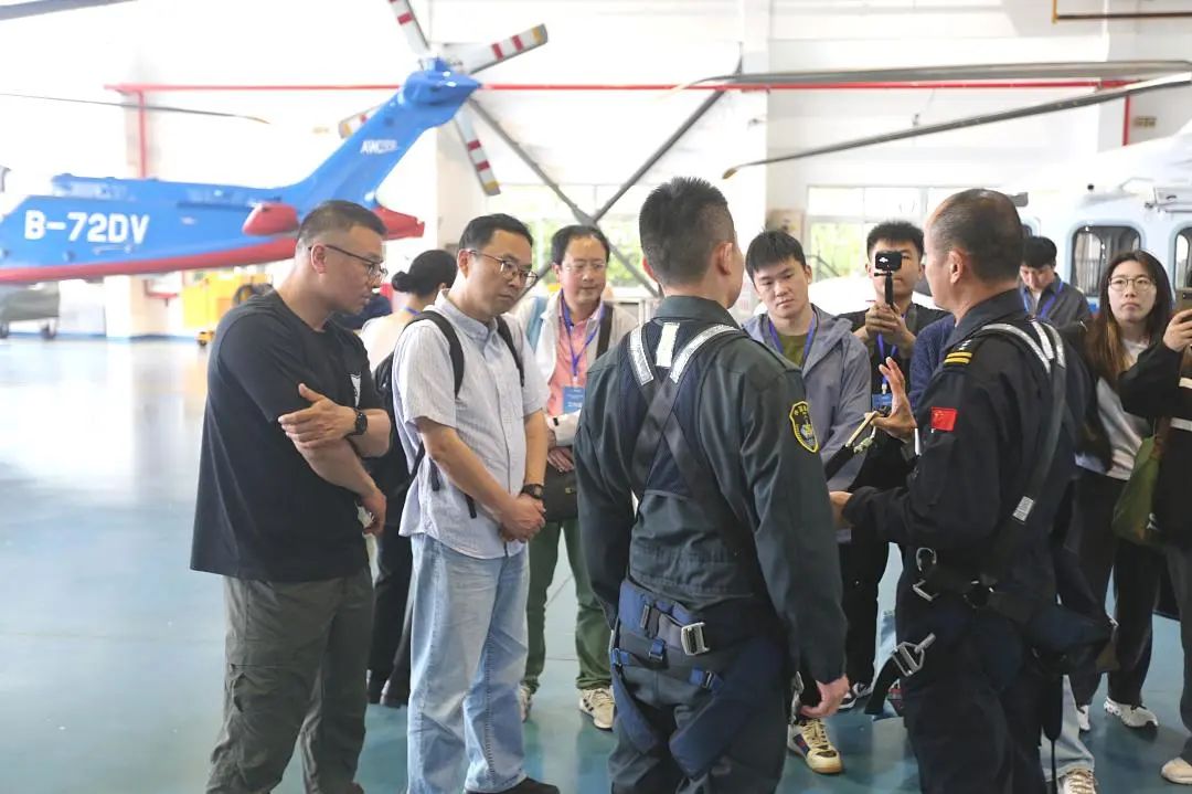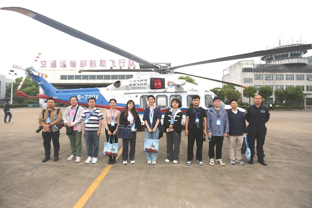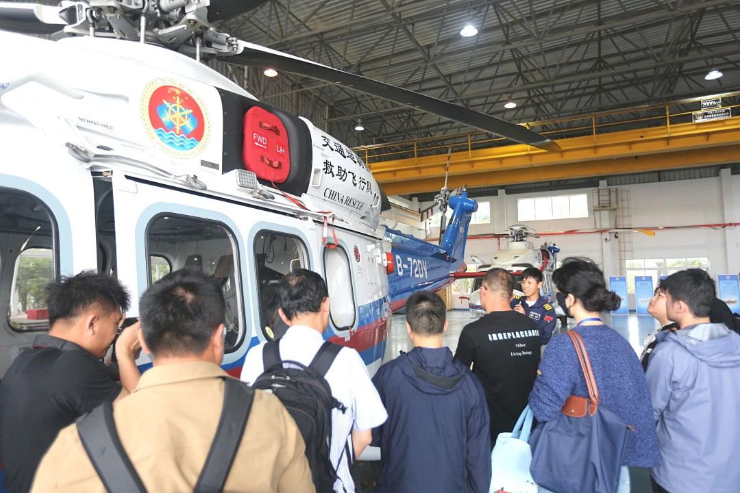 活動邀請媒體代表走進我國首支海上救助飛行隊——交通運輸部東海第一救助飛行隊,實地調研飛行隊展示館,近距離參觀了S-76D型和AW-189型救助直升機,了解航空救援裝備使用方法?;顒蝇F場,媒體代表還體驗了模擬飛行操控,觀摩了救助直升機本場演練。