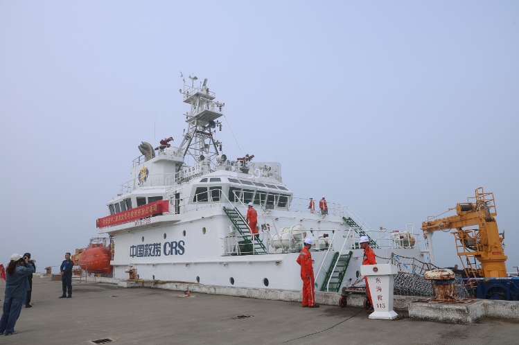 伴隨著“B-7345”救助直升機緩緩著陸在停機坪,“東海救113”輪靠泊至救助碼頭,2025年4月20日,“守望安寧:海洋文化與救撈”開放日活動在福建湄洲島順利舉辦。