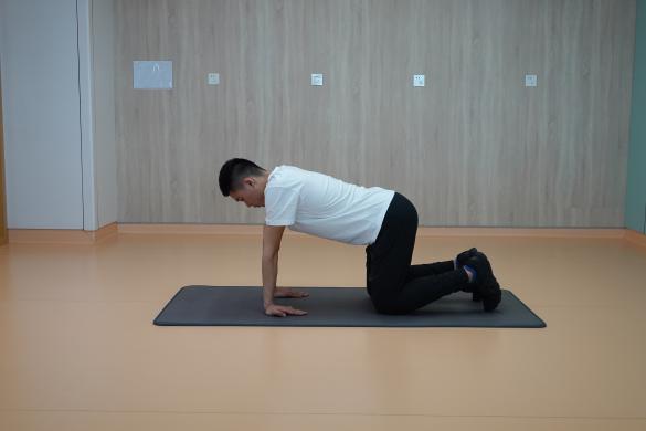 3、屈腕?。核淖愎蜃嗽阼べ|上,雙手指間朝向身體,臀部向下坐,拉伸屈腕肌,保持3-5秒,進行3-5次為1組,重復2-3組,組間休息60秒。
