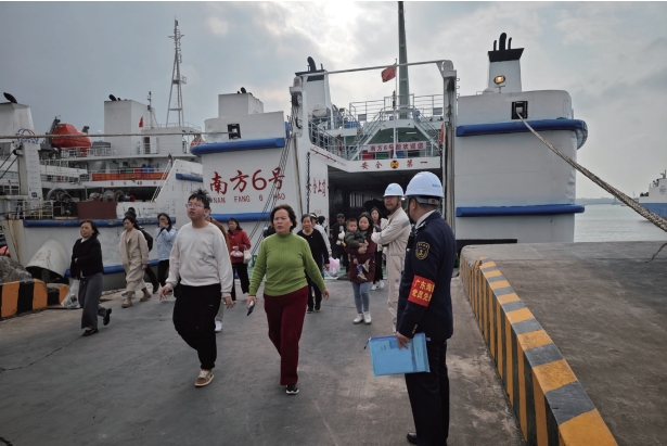 2025年春運期間,廣東海事局機關黨員干部支援瓊州海峽客滾船隨船監管服務工作。