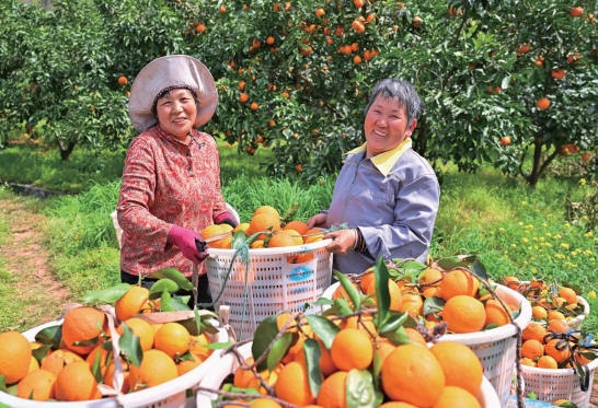 2025年3月27日,在四川天府新區眉山片區北斗鎮燈桿村,果農們忙著采摘、搬運、分揀、裝車柑橘。近年來,北斗鎮通過集中流轉土地規?;?、標準化發展柑橘產業,柑橘成為當地村民增收致富的“黃金果”。