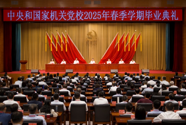 6月7日,中央和國家機關黨校(中央黨校中央和國家機關分校)舉行2025年春季學期畢業典禮。中央和國家機關工委分管日常工作的副書記、中央和國家機關黨校(中央黨校中央和國家機關分校)校長郭文奇出席畢業典禮并為學員頒發畢業證書。