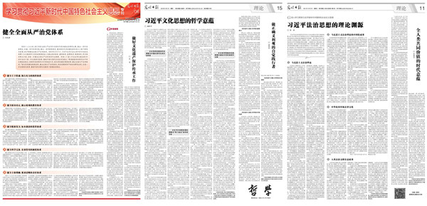 做好學理化闡釋,就是運用學科、學術的方法從規律層面研機析理,力求從感性認識上升到理性認識,揭示其蘊含的道理、學理和哲理。理論部負責《學習貫徹習近平新時代中國特色社會主義思想??罚ê喎Q“《學習??贰保?,每周五塊版,還有理論、經濟學、哲學、國家社科基金、史學、黨史、世界史、智庫等8個周刊(雙周刊),同時延展到新媒體多個平臺?!秾W習??纷?017年創辦,內容聚焦于習近平新時代中國特色社會主義思想的體系化研究、學理化闡釋,目前已出刊1600余期。其他各學術專業版面則從本學科視角出發,及時為黨的創新理論成果提供理論支持和專業化解讀。目前,已圍繞習近平文化思想、進一步全面深化改革、高質量發展、新質生產力等推出了大量理論文章,一批重磅理論文章得到《新華文摘》《學習活頁文選》《人大復印報刊資料》等轉發。