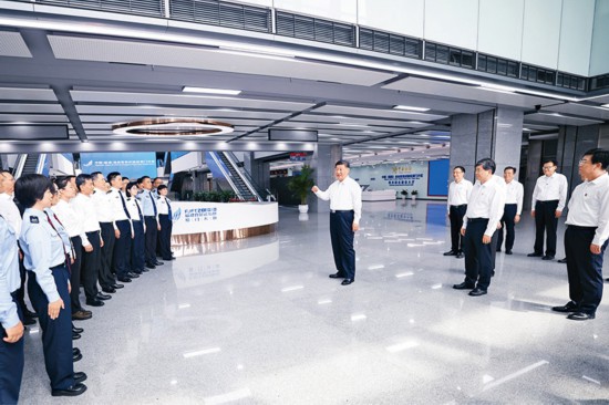 2024年10月15日至16日,中共中央總書記、國家主席、中央軍委主席習近平在福建考察。這是16日上午,習近平在中國(福建)自由貿易試驗區廈門片區考察時,同綜合服務大廳現場工作人員親切交流。 新華社記者 鞠鵬/攝