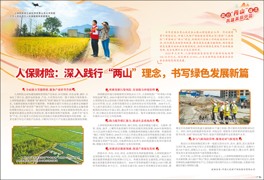 2025年上半年,人保財險綠色保險累計提供風險保障126.35萬億元,同比增長23.90%,以專業保障能力服務經濟社會全面綠色轉型發展。